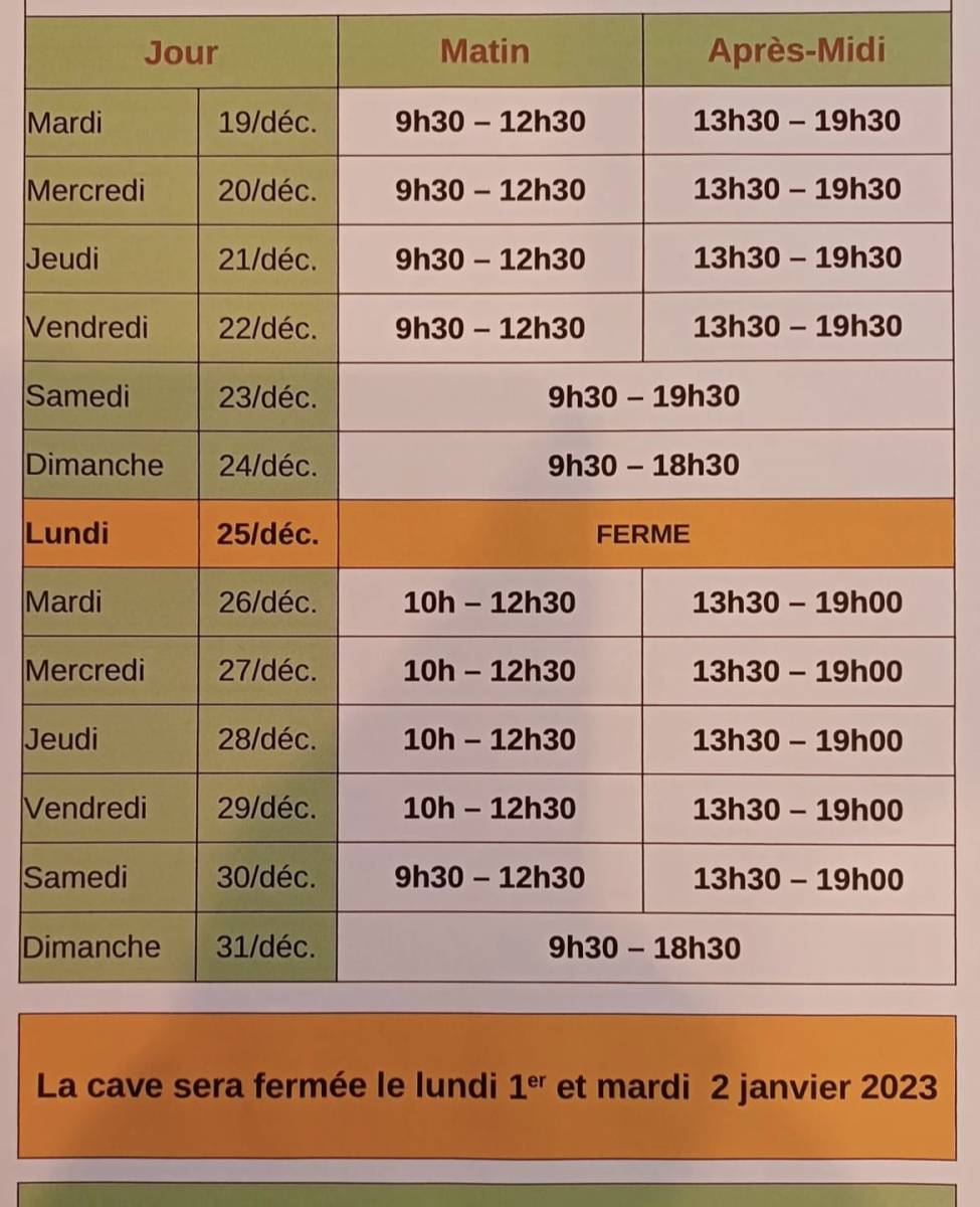 Votre Cave Vin O Ame à Luneray entre Dieppe et Saint Valéry en Caux modifie ses horaires d'ouverture pour les fêtes de fin d'Année.